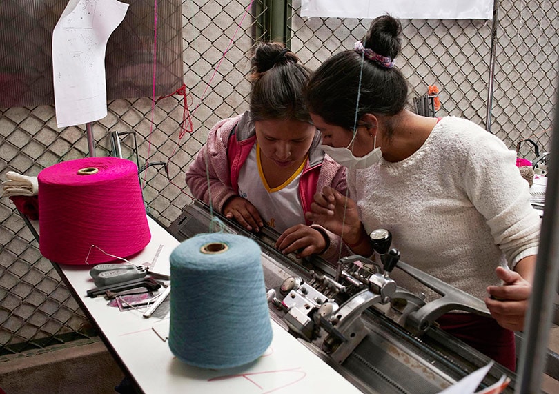 La fundadora de Carcel comentó que empezó haciendo una lista de países que tuvieran los mejores materiales del mundo y los índices más altos de delitos cometidos por mujeres en contextos de pobreza. “Perú era uno de los principales en mi lista por temas de tráfico de drogas y porque además tienen una tradición fantástica de productos hechos con alpaca. Así que contacté al presidente del Instituto Nacional penitenciario de Perú (INPEC), nos encontramos y me comentó que estaban interesados en tener oportunidades de empleo para gente en prisión. Recorrí el país, visitando diferentes prisiones y decidimos empezar por Cusco. Instalamos nuestro propio centro de producción allí y nosotros fuimos los que tuvimos que aprender porque no sabíamos nada sobre la alpaca. Louise (Van Hauen), mi socia y diseñadora presentó los primeros productos y así empezamos”, explicó.