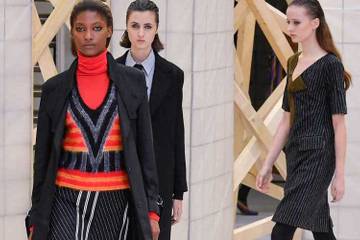 La década de 1940 fue revolucionaria en la moda ya que las mujeres por primera vez comenzaron a adaptar un vestuario más práctico, que vio reducciones en la tela y el vestido a longitud de la rodilla sustituir al vestido largo. El énfasis estaba en la cintura, que es precisamente lo que vimos para AW17. Los vestidos puestos justo encima de la rodilla tenían corpiños detallados, pero evitaban bolsillos superfluos, longitudes de la manga o sobre-detallando. El hombro sigue siendo fuerte con cinturones a la cintura. Lanvin tenía algunos de los mejores vestidos alrededor para este look