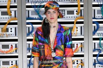 Dos modelos con cascos blancos en la cabeza que recuerdan al robot humanoide Pepper abren el desfile, luciendo el emblemático "tailleur" inmortalizado por Coco Chanel. En un decorado de "Centro de datos Chanel" reconstituido bajo la claraboya gigante del Grand Palais parisino, desfilan a continuación mujeres de aspecto deportivo, gorra con visera para una nota hip hop, y flor como accesorio para el toque elegante.