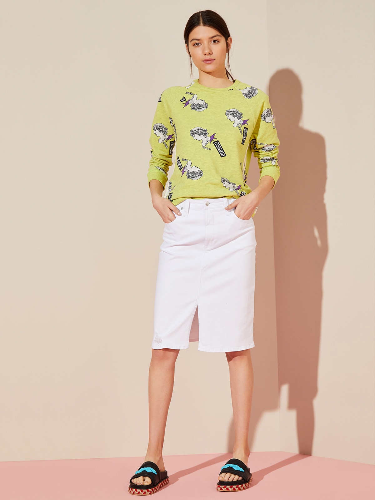 La alianza entre ambas marcas nació en la temporada primavera-verano 2018 y continúa hasta la actualidad, esta vez con esta nueva colección que se destaca por su paleta definida por la estampa de una flor violeta digitalizada. A ella se le suman para acompañar los diseños, los tonos blancos, violetas, verdes, rojos y amarillos.