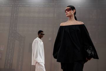 Más allá de las notas de color, en lo que respecta a sus patrones y sus hechuras, las propuestas de Cos para esta Primavera/Verano de 2024 se destacan por sus líneas vaporosas y fluidas, que los equipos creativos de la casa han sabido introducir dentro de las propuestas a través tanto de patrones ajustados, como de otros dominados por volúmenes amplios y ligeros. Características que se descubren como un hilo conductor a lo largo de todas las colecciones de esta temporada de la firma, desde este singular desfile acaecido en Roma, durante el que volvió a ponerse en valor la apuesta por la atemporalidad de Cos, mediante una sucesión de propuestas que lograban aunar y fusionar los estándares más propios de la moda minimalista y nórdica, con los de la histórica sastrería tradicional masculina y con los de la Alta Costura. El ámbito más elevado de toda la industria, del que se protegen los trabajos más primorosos realizados a mano, con los tejidos más delicados como materia prima, y que igualmente se vio representado en estas colecciones y en este desfile, de la mano de una tan amplia como distinta sucesión de conjuntos y de prendas plisadas y fruncidas. Detalles que llegan para terminar de elevar el carácter y el perfil de estas colecciones, que como principales conjuntos y piezas clave presentaron, para ellos, suéteres de punto calado, un mono con cremallera, una cazadora de cuero texturizada o un colorido traje sastre en rojo teja; y para ellas, pantalones y blusas de amplios volúmenes, distintos conjuntos en tendencia “no pants”, un pantalón plisado con los bordes tintados, un vestido rojo-fuego con detalles de fruncidos, o el espectacular vestido plisado que se encargó de mostrar desde la pasarela Mariacarla Boscono.
