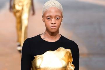 El show de la diseñadora uruguaya Gabriela Hearst llamó la atención por su ambientación. En un enorme depósito de chapas corrugadas y ventanas opacas, sus modelos - hombres y mujeres- desfilaron por una pasarela rodeados por un coro de gospel.