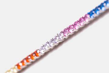 Para ello, las piezas, collares y brazaletes, están elaboradas con los colores de la bandera que se ha convertido en insignia de orgullo. Creados en plata, tanto el collar como el brazalete tienen el perímetro recubierto con espinolitas de colores que crean un arcoiris.
