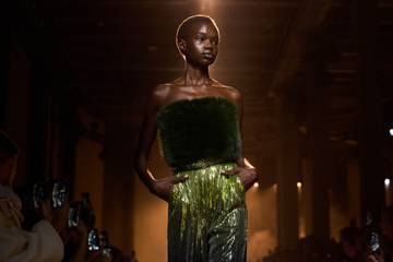 Elie Saab viste a la "working girl" con pieles sintéticas y lentejuelas