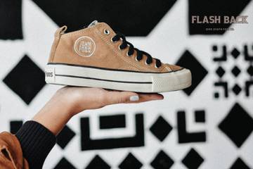 El modelo “164 flashback” tiene aires retro, altura media acorde al largo de los pantalones que se usaban en los ´90 y el tradicional aplique circular con el sello de John Foos.