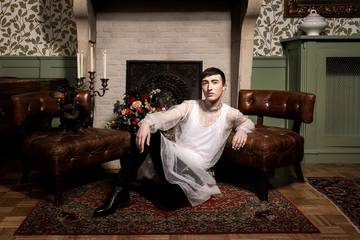 Gerrit Elen posa con los looks de moda nupcial sin género de Eva Janssens