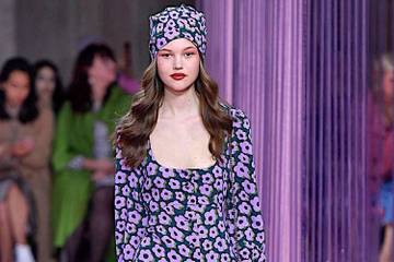 Lila, mostaza, rosa viejo, verde pino, la marca diversifica la gama de colores de cara a la próxima temporada otoño/invierno, y la diseñadora no duda en atreverse con mezclas sobre faldas o sobre polos de manga larga. Nicola Glass también juega con los estampados, su gran especialidad, manifestando una preferencia por el estampado animal en una camisa, en un vestido o incluso en un abrigo.