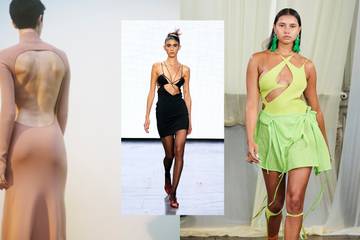Sin duda, las siluetas se han acercado más al cuerpo, como demuestra el regreso de prendas como los vestidos body-con, que ahora adquieren un toque contemporáneo con detalles como los fruncidos, los recortes y los drapeados. La idea de volver a centrar la atención en el cuerpo puede atribuirse a la actual tendencia por vestirse de forma sexy y a una nueva temporada de exuberancia sensual. En las pasarelas, hemos visto a los diseñadores abrazar la sensualidad en la vestimenta a través de la exhibición de grandes cantidades de piel, donde las prendas se confeccionan con precisión para dejar muy poco a la imaginación. Los expresivos recortes, aplicados en todas partes, desde el escote hasta los huesos de la cadera, exponen la obsesión de la moda por las nuevas zonas erógenas: revelando los hombros y la clavícula a través de escotes halter, de un solo hombro y tops sin tirantes que se sienten liberadores e inclusivos a la vez. Los recortes en la cadera en forma de híbrido tanga-pantalón también pueden ser atrevidos y excitantes, y triunfan especialmente con la generación Z.
