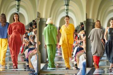 El juego de texturas, holanes, geometría y drapeados es lo que viste a las prendas. El contraste también se ve en los cortes. Aunque predominantemente se mostraron prendas de líneas holgadas como túnicas, mangas abullonadas y pantalones amplios, también se acompañaron con tops ceñidos y cortos, con aperturas y sin mangas.