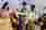 Sus vestidos están adornados con flecos, y la ropa está elaborada con aso oke, un tejido multirrayas y multicolor, creado por los yorubas de África occidental.