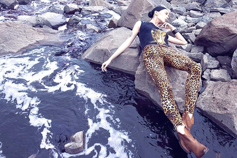 Por otra parte también la industria está manchada por su incumplimiento de normativas medioambientales causando contaminación de agua, tierras y aire. Según un estudio de la WWF, la industria textil usa 378 billones de litros de agua al año para procesar y teñir ropa; 8 mil químicos sintéticos se liberan en ríos y océanos que sirven como suministro de agua para ciudades y sembradíos. Incluso el algodón, uno de los materiales menos dañinos, hace uso de pesticidas para cuidar los cultivos lo afecta directamente la biodiversidad de la zona.