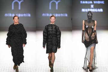 La colección"Démodé" de Made in Anselma ofreció una ruptura radical con lo convencional, presentando prendas confeccionadas íntegramente con cortinas desechadas. Este provocador desfile sirvió como un comentario sobre los excesos de la vida moderna y las contradicciones inherentes en las discusiones sobre sostenibilidad y moda lenta.