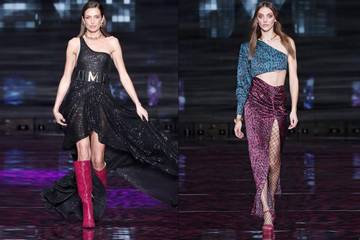 Prendas con cortes ochenteros y cierto toque funk como pantalones acampanados de estilo palazzo, trajes oversized con hombreras y que se pueden combinar con vestidos largos, además de total looks one shoulder en punto, prendas sastreras y camisas cropped, monos, faldas tubo, y abrigos de pelo han sido las prendas que dominaron la pasarela de la marca catalana.