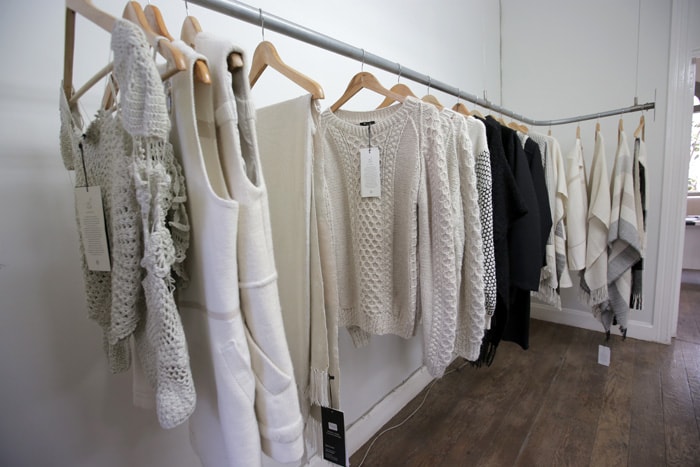 Para sus diseños utilizan materiales típicos peruanos como Baby Alpaca y Algodón Pima. Parte de estas materias primas se envían a la zona de Huancavélica, donde especialistas en el arte textil los convierten en prendas. “Todo lo producimos aquí y en la sierra. Trabajamos con artesanos de comunidades y apoyamos el proyecto social que va con eso” comentó Giuliana.