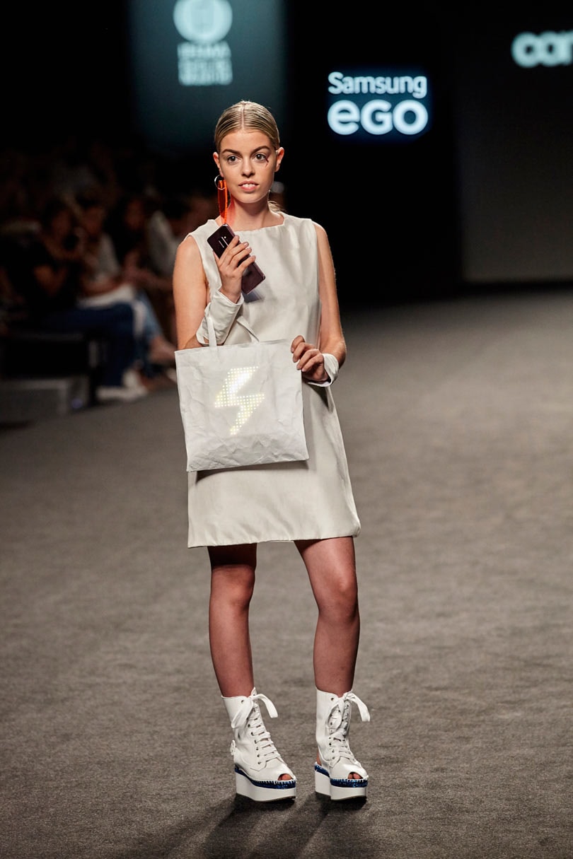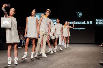 El pasado sábado, en la jornada inaugural de Mercedes-Benz Fashion Week Madrid, se cumplía la décima edición del certamen Samsung EGO Innovation Project que premia la audacia de los más jóvenes a la hora de unir tecnología y moda. En esta ocasión, la firma constanza+LAB desfiló con su colección QUANTUM, una colección formada por prendas inteligentes que cambiaban su color sobre la pasarela, gracias a una aplicación instalada en sus dispositivos móviles.