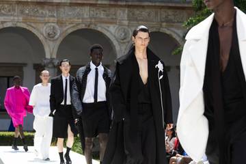 Así pues, y desde el claustro central de la Universidad de Milán, situada a escasos metros del Palacio Real y del Duomo de la capital de la Lombardía, la colección hacía su aparición en “un momento” que se está mostrando propicio “para redefinir una identidad masculina, para reexaminar el significado de la masculinidad y descubrir una perspectiva nueva y moderna”. Unos compromisos que, defienden desde la dirección de Valentino entrando a describir esta propuesta, Pierpaolo Piccioli ha tratado de sostener abriéndose a “reconsiderar su definición” para el tiempo “presente”; para “la vida de los hombres, la vida de su ropa” y para “la realidad de la masculinidad hoy”.