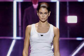 Viniendo de este modo a completar el discurso previamente anunciado por Prada en su colección de moda hombre de enero, tal y como ha venido ocurriendo desde que Raf Simons entrase a ocupar el cargo de codirector creativo de la firma italiana el pasado abril de 2020, la propuesta se mostraba como el acto de presentación del que está llamado a convertirse en el nuevo armario de la nueva mujer contemporánea. Un conjunto de piezas que encuentran sus orígenes en los conceptos de la cotidianidad y el pragmatismo, y que terminan perfilándose a través de formas y patrones en los que los tradicionales roles de género se desdibujan, al tiempo que la utilidad propia de las prendas de diario, de esas mismas prendas que no han hecho más que ganar protagonismo en nuestros armarios al abrazo de esta pandemia, sale de la intimidad del hogar, ya no solo a la calle sino, a la elegancia propia de los eventos de noche.