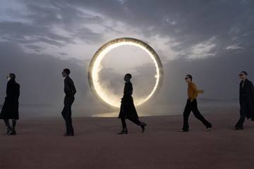 Además de honrar al propio legado y a la propia historia de la casa, y a la de su fundador, con esta escenografía, ideada por el mismo Vaccarelo en colaboración con la escenógrafa y artista británica Es Devlin, este oasis neofuturista que actuó de distópico paraje para la presentación de la colección, se ha inspirado en la novela “The Sheltering Sky” del estadounidense Paul Bowles. Una obra publicada en 1949, llevada al cine en 1990 por Bernardo Bertoucci, que le sirvió a Vaccarelo para concebir ese oasis y ese anillo circular en torno a los que gravitó el desfile, y que representan simbólicamente la yuxtaposición de la esperanza y el misterio, como metáfora de la bella complejidad de la vida.