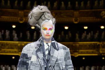 Madrid – Todavía sigue sin habernos quedado del todo claro qué es lo que terminó sucediendo durante el debut de Thom Browne de este lunes 3 de julio en la Semana de la Alta Costura de París. ¿Acaso su colección se mostraba como una reinterpretación de los códigos ya vistos en casas como Schiaparelli o Viktor&Rolf, con un “toque” del Dior de John Galliano? ¿O se descubría como un reflejo de unas referencias propias y auténticamente genuinas? En cualquier caso, lo que sí podemos aseverar a ciencia cierta es que resultó en un espectáculo digno de admiración, y perfectamente ajustado a la sugerente atmósfera que se ofrecía desde el Palacio de la Ópera de París. Un Palais Garnier que, mientras de puertas hacia fuera siguió mostrándose a media luz como consecuencia de las labores de reforma a las que se encuentra sometido el edificio, de puertas hacia dentro terminaba por vestirse del fulgurante gris que se convirtió en el protagonista indiscutible de esta composición de volúmenes y de siluetas, que la casa de modas neoyorquina terminó por presentar como su primera colección de Alta Costura.