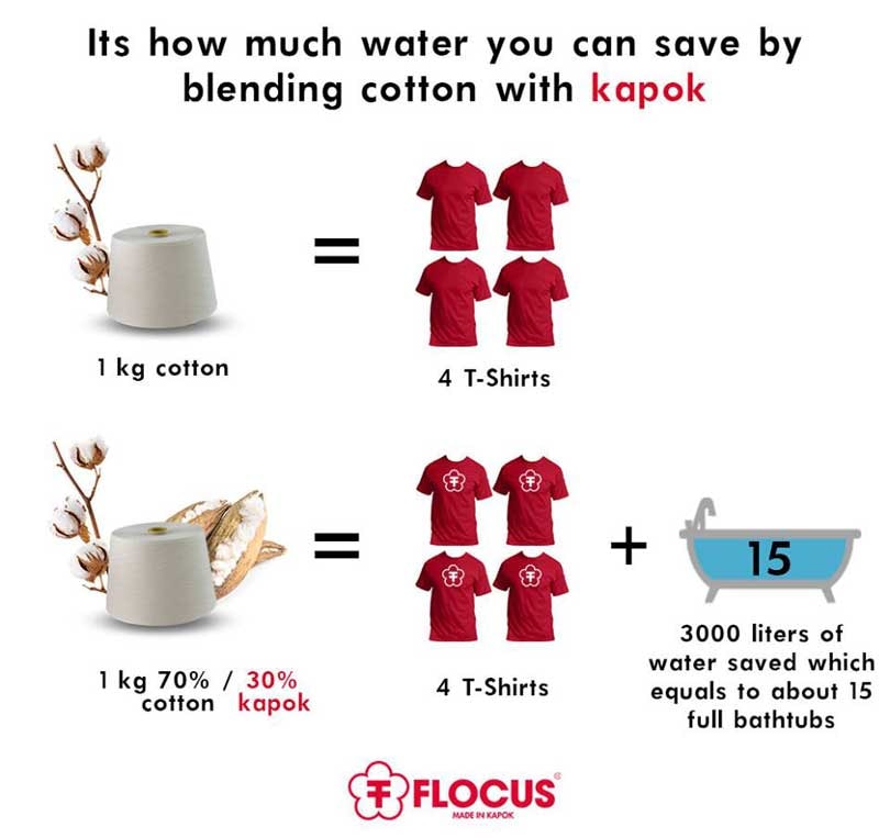 El único inconveniente es que aunque la fibra se puede tejer en la tela, no hay un cien por ciento de cepo ya que la fibra no es adecuada para eso. Sin embargo, mezclarlo con otros materiales como el algodón puede ahorrar enormes cantidades de agua. Por ejemplo, si se mezcla 1 kilogramo de algodón, que es necesario para hacer cuatro camisetas, con solo el 30 por ciento de kapok, se ahorran 3.000 litros de agua, ¡el equivalente a 15 bañeras llenas!