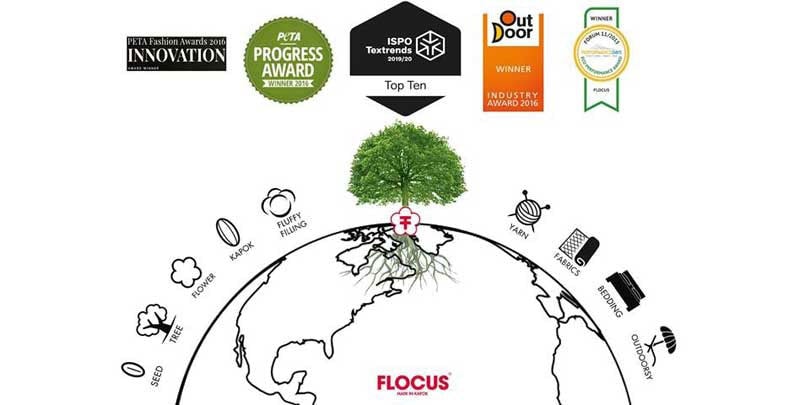 No es de extrañar que esto haya sido recompensado y Flocus ha sido galardonado con un premio ecológico de Performance Days a finales de 2015. Su tejido ganador de kapok fue elegido entre casi 850 telas más como las más innovadoras y ecológicas de Performance Days para 2015.