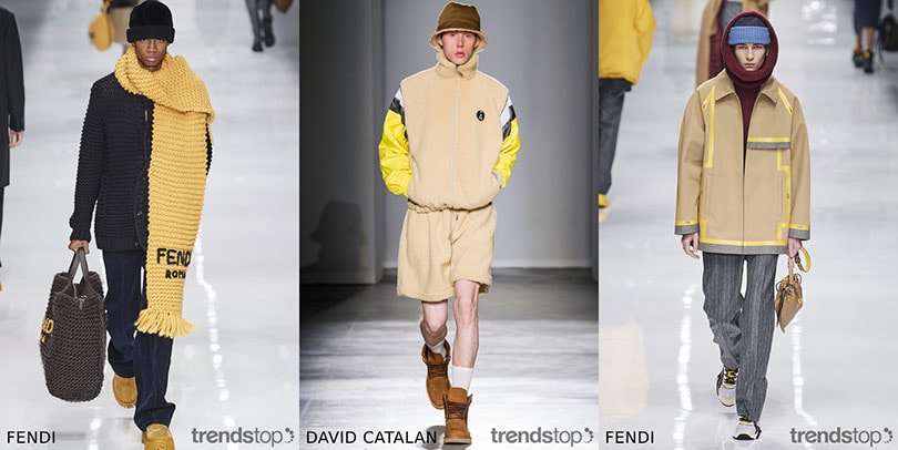 Para la temporada invernal, los amarillos aportan un toque de color vibrante con una alegre sensación veraniega. Las mangas al contraste debajo de los chalecos aportan un aspecto deportivo, mientras que la estética más industrial se canaliza a través de costuras selladas. Los accesorios de invierno se visten en colores yema de huevo jugando al contraste con tonos oscuros.