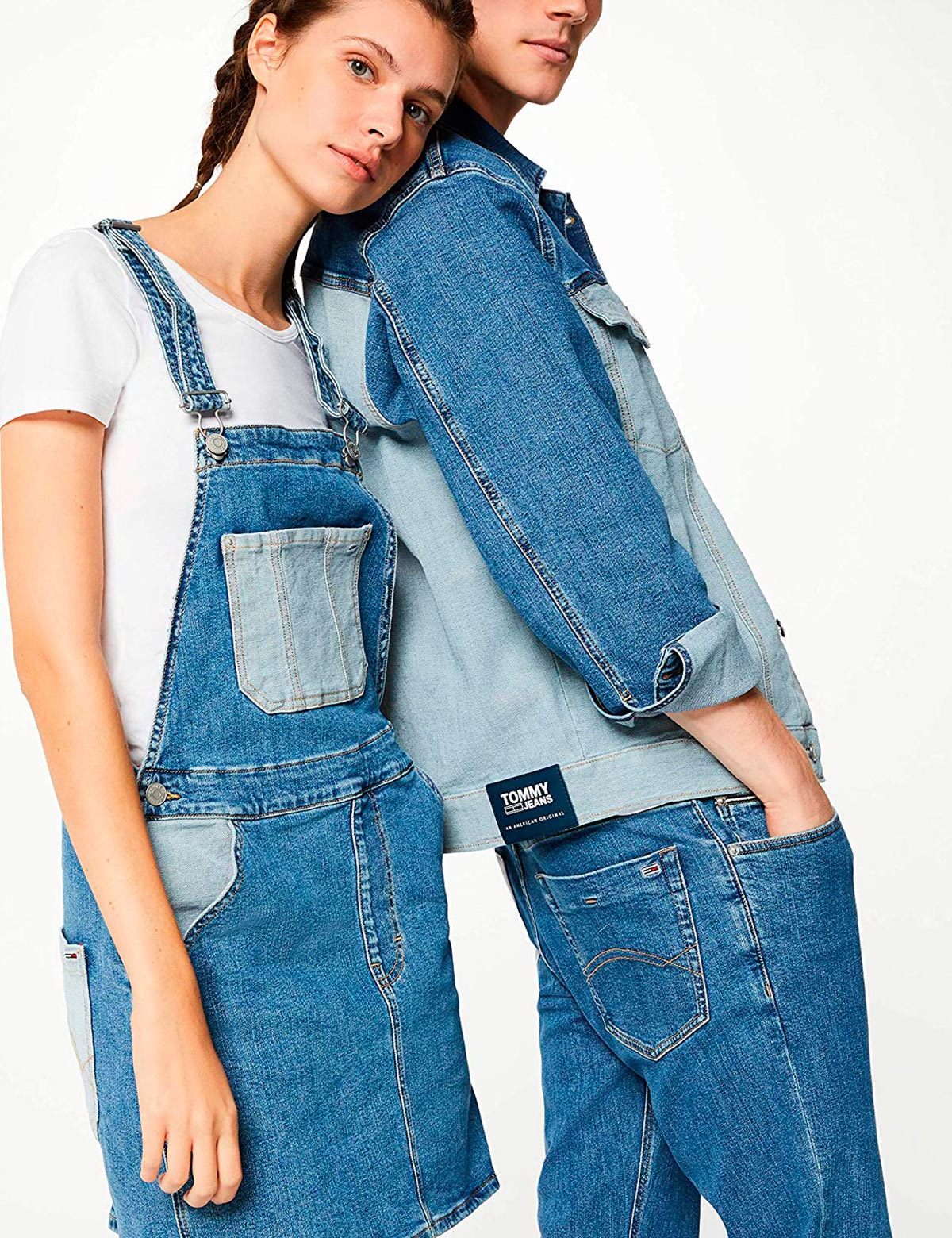 La colección exclusiva Tommy Jeans x Amazon se compone de un total de cinco piezas para hombre y mujer, fabricadas en tela vaquera y de estilo vintage, imagen fruto de una atractiva combinación de diferentes tonalidades de azules. Prendas entre las que encontramos desde un original peto vaquero (99,90 euros), a los básicos pantalones vaqueros de hombre y mujer (119 euros), y con sendas chaquetas en similares combinaciones cromáticas (129 euros).