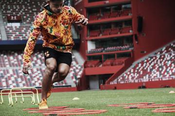 Además de las sudaderas, chamarras, playeras y shorts, la colección lleva los colores insignia del altar de muertos también al calzado. Así, pinta de amarillo anaranjado y morado de los HOVR, PHANTOM 3 y los SONIC 5.