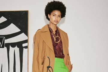 Pantalón extralargo verde manzana con camisa y gabardina para un estilo despreocupado. Chaqueta de esmoquin, pantalón negro y bufanda de leopardo para quien busque un toque más glamuroso. La colección es ecléctica y de clara inspiración setentera.