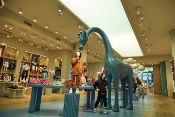 El proyecto fue desarrollado por Estudio Te. Su director Ramiro Terrado explicó que la idea del proyecto tuvo que ver con la creación de una experiencia sensorial y visual única para sus clientes. “Se buscó utilizar elementos lúdicos, materiales brillantes y morfologías distintas para crear una experiencia poco común en locales comerciales de ropa. Para lograrlo, se diseñó una plaza central que presenta un cambio de piso y un barrisol en el techo de 17 metros (la gran luz cenital) con el sistema de control de cambios de iluminación, qué a lo largo de una visita promedio de clientes, puedan experimentar las distintas escenas que fueron programadas, es un recurso novedoso en el mundo retail. Este espacio es el punto de encuentro de los distintos elementos del diseño, como los animales y el árbol”.