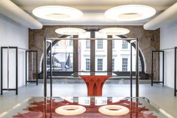 Además, el trabajo de Pierre Paulin y Martin Szekely también está iluminado por la instalación de luz de Marc Newson y la luz de la escultura de la pared de Kris Ruhs.