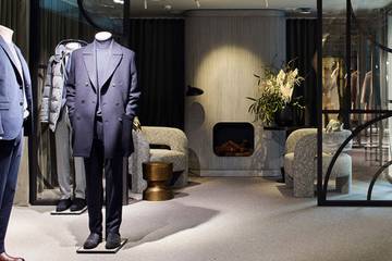 El nuevo espacio resulta en una exquisita atmósfera donde predominan los tonos neutros sobre una dramática estética industrial. En la que cortinajes y suelos enmoquetados se funden con muebles de autor, instalaciones vistas, cristaleras, incluso una chimenea o lo que parecen ser ramas secas de enredadera. Lo que otorga al ambiente cierto aire a invernadero en desuso, y con ello introduciendo un elemento representativo del entorno exterior que no deja de resultar especialmente atractivo a la hora de disponer las prendas. Todo ello en relación a un espacio especialmente diseñado para albergar la colección “Evening Men & Women” de la marca. Pensada para los eventos especiales, tanto del día como de la noche, y compuesta de estilismos en los que los diseños de sastrería contrastan con el cuero y los toques “glitter”.