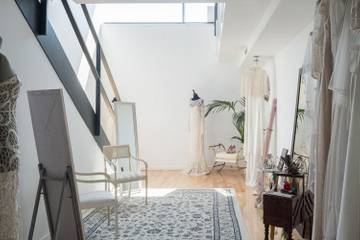 El loft industrial tiene una superficie de 75 metros cuadrados, y dos plantas iluminadas con luz natural durante todo el año. Es un espacio amplio que se presta para trabajar y atender a las novias. En la planta superior se ofrece asesoría personal de maquillaje y peluquería; mientras la planta baja es la zona dedicada al diseño, confección, prueba, exposición, almacenaje de los tejidos antiguos y todo lo referente con el atelier.
